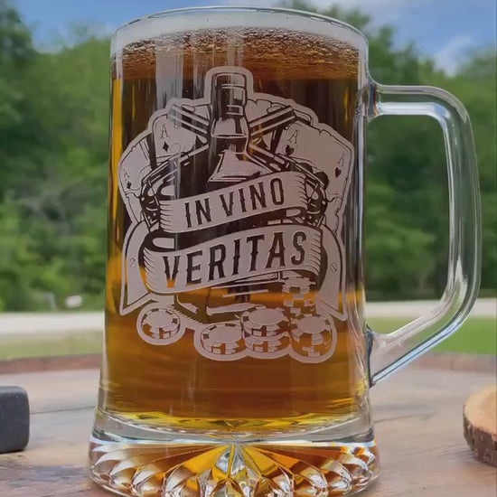 Doc Holliday Mug / In Vino Veritas / Engraved 23 oz. Glass Beer Mug / Gift for Him / Gifts for Men / Father's Day Gift / Valentine's Day Gift